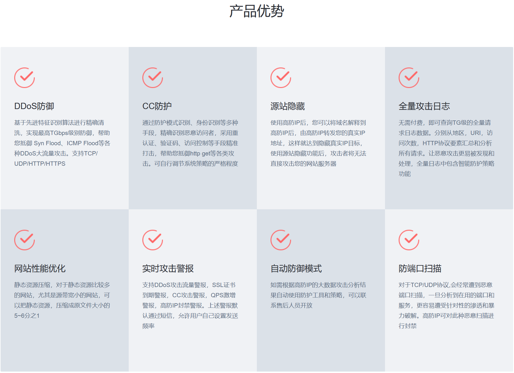 高防IP是针对互联网服务器在遭受大流量的DDoS攻击后导致服务不可用的情况下,推出的付费增值服务。DDOS防御能力,总体防御超5000G,并在全球不同地区完成部署,让您的业务全球护航。